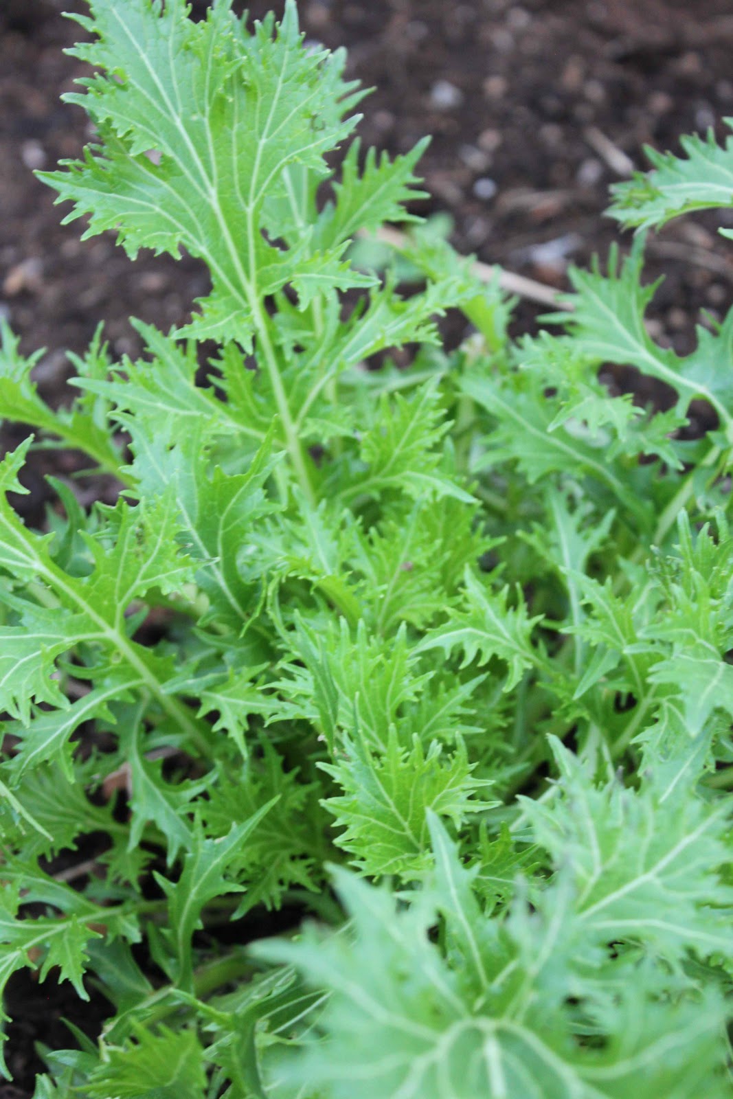 Mizuna is another essential cold season green with pretty, finely cut leaves and various shades of green and purple. It has a mild wasabi-like flavour and is great young in salads or stir-fried when mature. It also makes a nice sushi roll if you don't have any nori sheets!